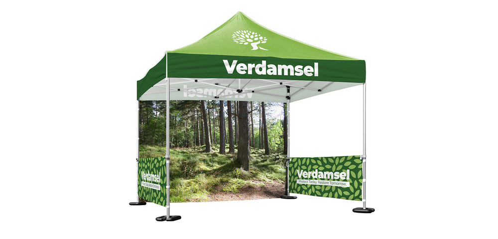 Our gazebos are available with any combination of full and half wall, all featuring single or double sided print.