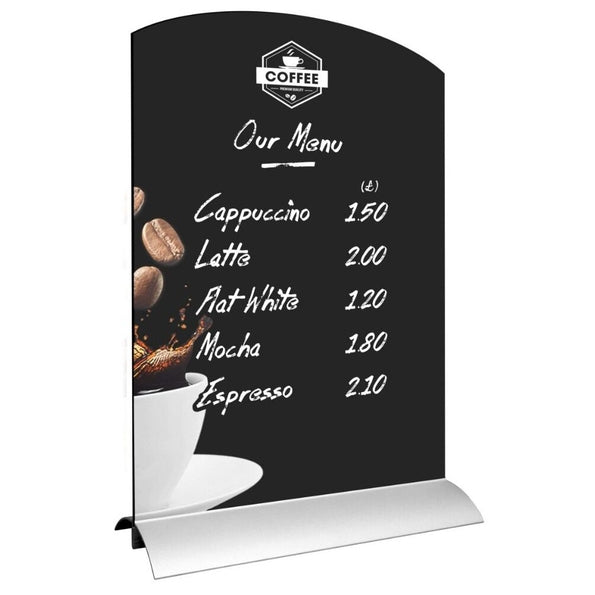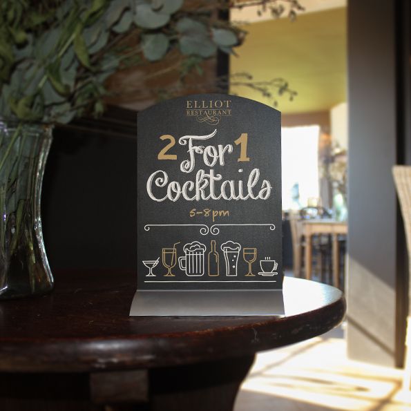 Table top chalkboards featuring our spring powered Grip-Action Bases.