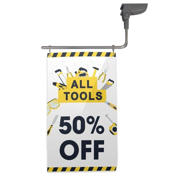- Suitable for single-sided or double-sided promotional messaging in paper or lightweight card or banner fabrics.